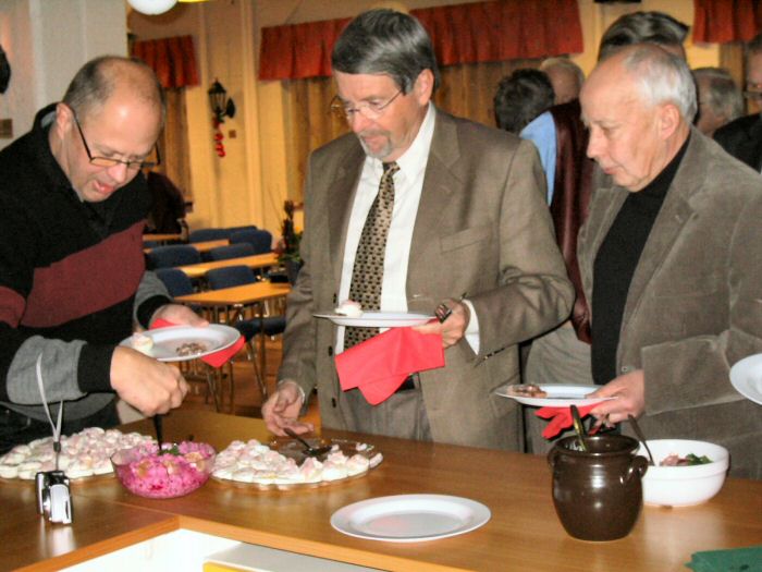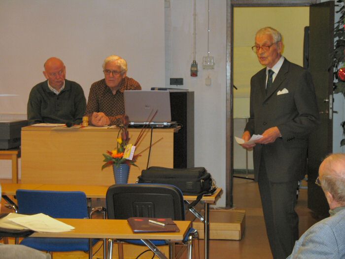 Viggo Wentzel, som lämnar styrelsen, avtackades av Lennart med blommor och uppskattande ord. Viggo har ju varit styrelsemedlem sedan föreningen startades och var initiativtagare till att föreningen bildades. Viggo tackade och uttryckte glädje och stolthet över att tillhöra Datasaabs Vänner. Applåder!