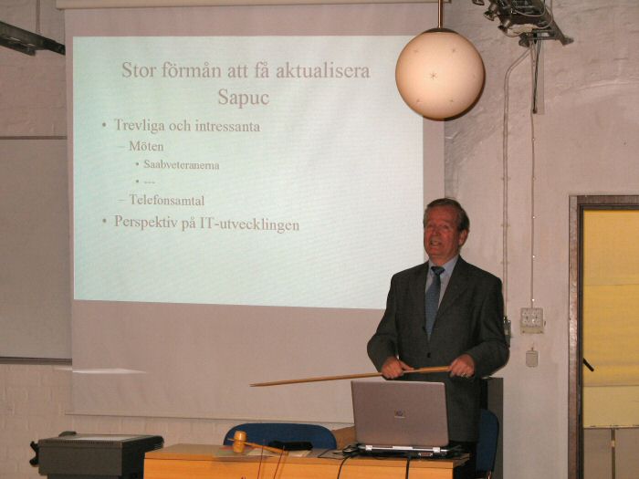 Sedan ordförande avslutat mötet och tackat för visat intresse överlämnades scenen till Gunnar Hermansson som på ett uppskattat sätt berättade om SAPUC, en D21-anläggning för bearbetning av flygprovdata.