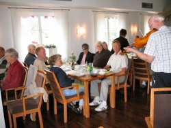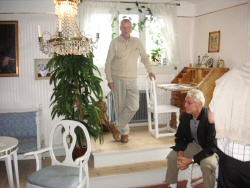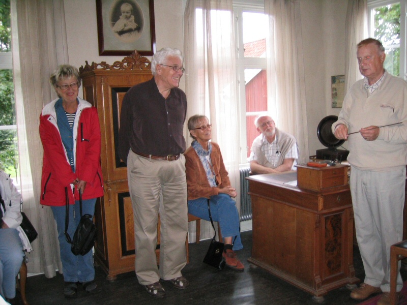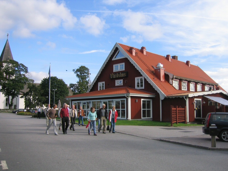 En upplevelsedag i fantastiska Vrigstad med Datasaabs vänner den 6 september. Så formulerade Gunnel och Rolf Hultqvist inbjudan till vår traditionella höstutflykt. Som seden bjuder så rattade vi våra egna bilar till och från resmålet i samband med höstutflykten. Ett 20-tal personer hade hörsammat inbjudan. Förutom en väl arrangerad resa hade Gunnel och Rolf också beställt strålande sol och en temperatur strax under 20 grader Celsius. Klicka för att förstora bilderna! Det sköna septembervädret hade lockat Marie-Louise och Göran Löv att ta fram ”cabben”. Rattande sin metallickglänsande Mazda MX-5 förstod vi att Göran och Marie-Louise njöt av åkturen. Även vi som inte åkte ”cab” njöt och att rubriken ”En god bit av Småland” stämde tror jag alla kan intyga. Efter 2 timmars bilresa var det ett nöje att samlas kring fikaborden på Vrigstad Wärdshus. Kaffe och fralla smakade utmärkt. I samband med pausen hälsade vår värd Stig Marz välkommen till Vrigstad och dagens huvudmål Gamla Bankgården. Efter en kort promenad stod vi framför den gamla träbyggnaden som inrymmer Sveriges enda bankmuseum på ursprunglig plats. Gamla Bankgården består av ett sparbankskontor från 1900-talets början samt en lägenhet som beboddes av kamreren och tillika kronolänsmannen Alfred Dahl. Stig Marz öppnade dörren och vi steg in i en autentisk miljö från förra sekelskiftet. Han berättade med inlevelse om många intressanta händelser. Bl. a. fick vi höra hur in- och utlåning hanterades, vad 100 kr 1910 motsvarar i dagens penningvärde samt om skottet i Gamla Bankgården då det uppdagades att en tjänsteman förskingrat bankens medel Via en knarrande och gisten trappa till andra våningen kom vi så in i familjen Dahls lägenhet. Det var fantastiskt att få stiga in i en miljö som speglar livet i en småborgerlig familj från tidigt 1900-tal. Stig berättade att inredningen i princip är oförändrad. Familjen Alfred Dahl och hans barn var mycket måna om att bevara och skydda originalmiljön. Vi fick också höra talas om flera intressanta händelser samt om prominenta gäster och vänner till familjen. Såväl Fritiof Nilsson ”Piraten” som Kristina Nilsson hade på olika sätt nära kontakt med Vrigstad och familjen Dahl. Efter 2 timmars intressant rundvandring i Gamla Bankgården var det dags att ta den korta promenaden tillbaka till värdshuset för lunch. En fantastisk kräftsoppa och ostkaka från Vrigstads ost- och ostkaksbageri smakade utmärkt. Som smålänning och sann ostkaksvän ger jag full pott. Ostkakan med tillbehör som vispgrädde och sylt smakade väldigt äkta. Eftermiddagspasset bestod av besök hos Eva Spånberg, konstnär och livsfilosof, Vrigstad kyrka med altarmålning av Per Hörberg och slutligen inköpsrunda i ostkaksbageriets shop. Svensk Camembert från AB Smålandsost i Vrigstad och ostkaka inhandlades av de flesta deltagarna. Det var glädjande att se att så mycket småländsk ostkaka skulle hamna i Östergötland. Avslutningsvis vill jag å ressällskapets vägnar tacka Gunnel och Rolf för ett utmärkt arrangemang. Vi ser redan nu fram mot våren 2008 då vi förhoppningsvis kan anmäla oss till ytterligare ett spännande resmål. Sänder också ett stort tack till Stig Marz, Sparbanksstiftelsen ALFA, Vrigstad Hembygdsförening och Vrigstad Samhällsförening. Utan denna konstellation skulle aldrig en skatt som Gamla Bankgården existera. Om du har vägarna förbi Vrigstad kan jag starkt rekommendera ett besök. /Reino Florén Foton: Björn Johansson, Reino Florén och Heike Bergsten