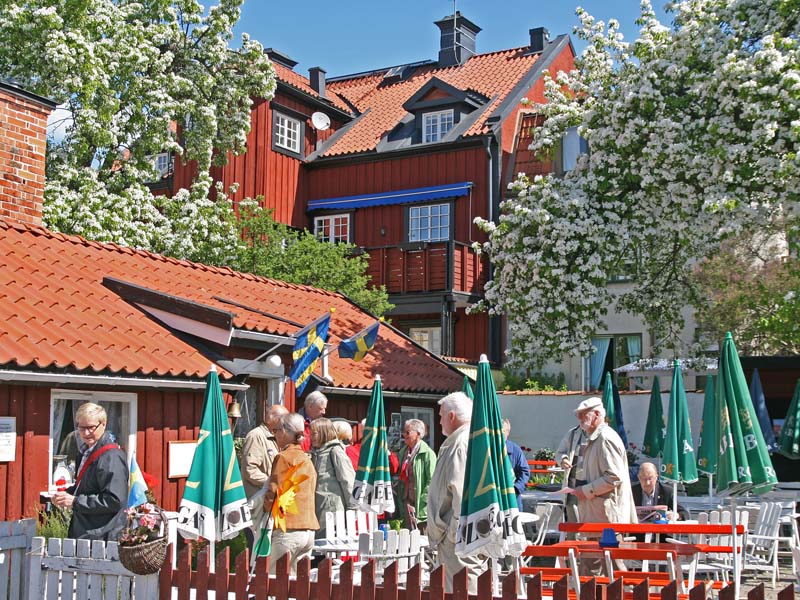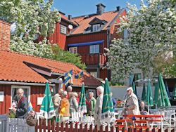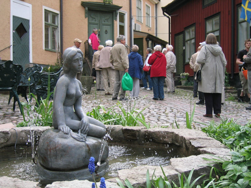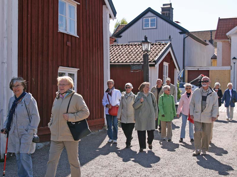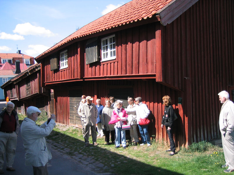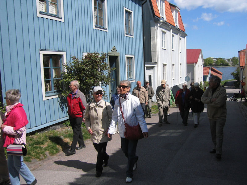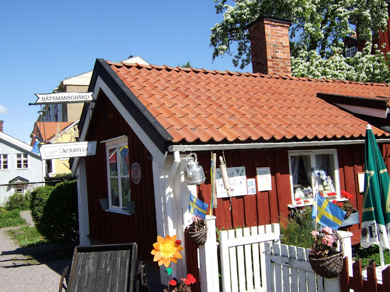 Bättre upp var det första vi fick se, Ackrells kafé, inhyst i ett båtmanshus från 1746. Det var ett av flera båtmanshus, belägna vid Båtmansgränd, en pittoresk idyll i solskenet. Fru Ackrell försäkrade att det blommande gråpäronträdet utanför kaféet var Västerviks äldsta och själv hade hon något längre bort låtit sätta upp en byst av Gösta Bernhard, en av stans kändisar. Det finns fler, fick vi lära oss. Alice Babs, Björn Ulveus och Stefan Edberg, till exempel. Att vi fick plats i huset var ett under, men det gick, nätt och jämnt.